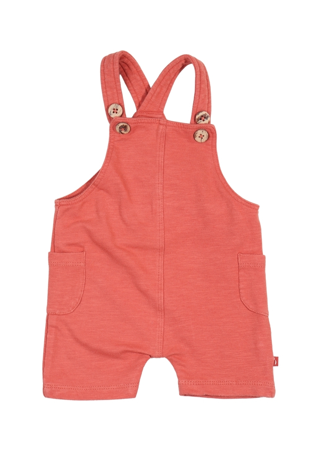 Oranjerode salopetteshort met leuke zakjes. Verstelbare schouderbandjes.